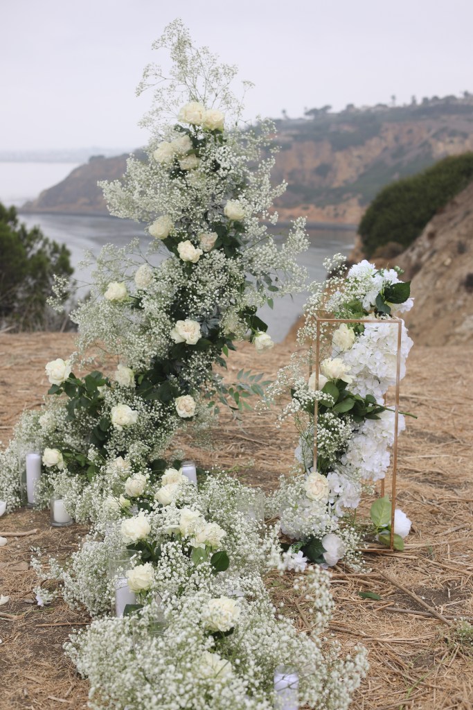 - 2 Arches made with Fresh Flowers,2 garlands along the walkway with fresh baby’s breath and roses.(Can be customised in any color you like!)